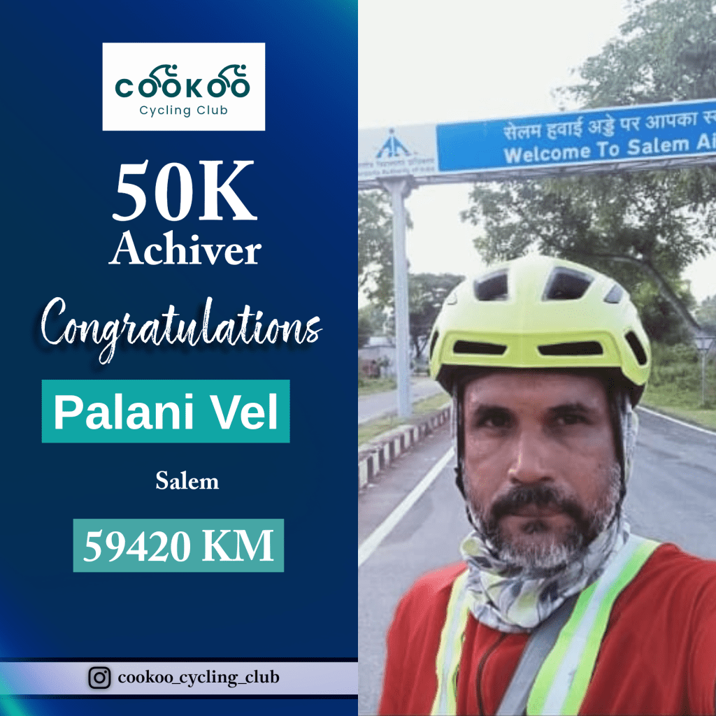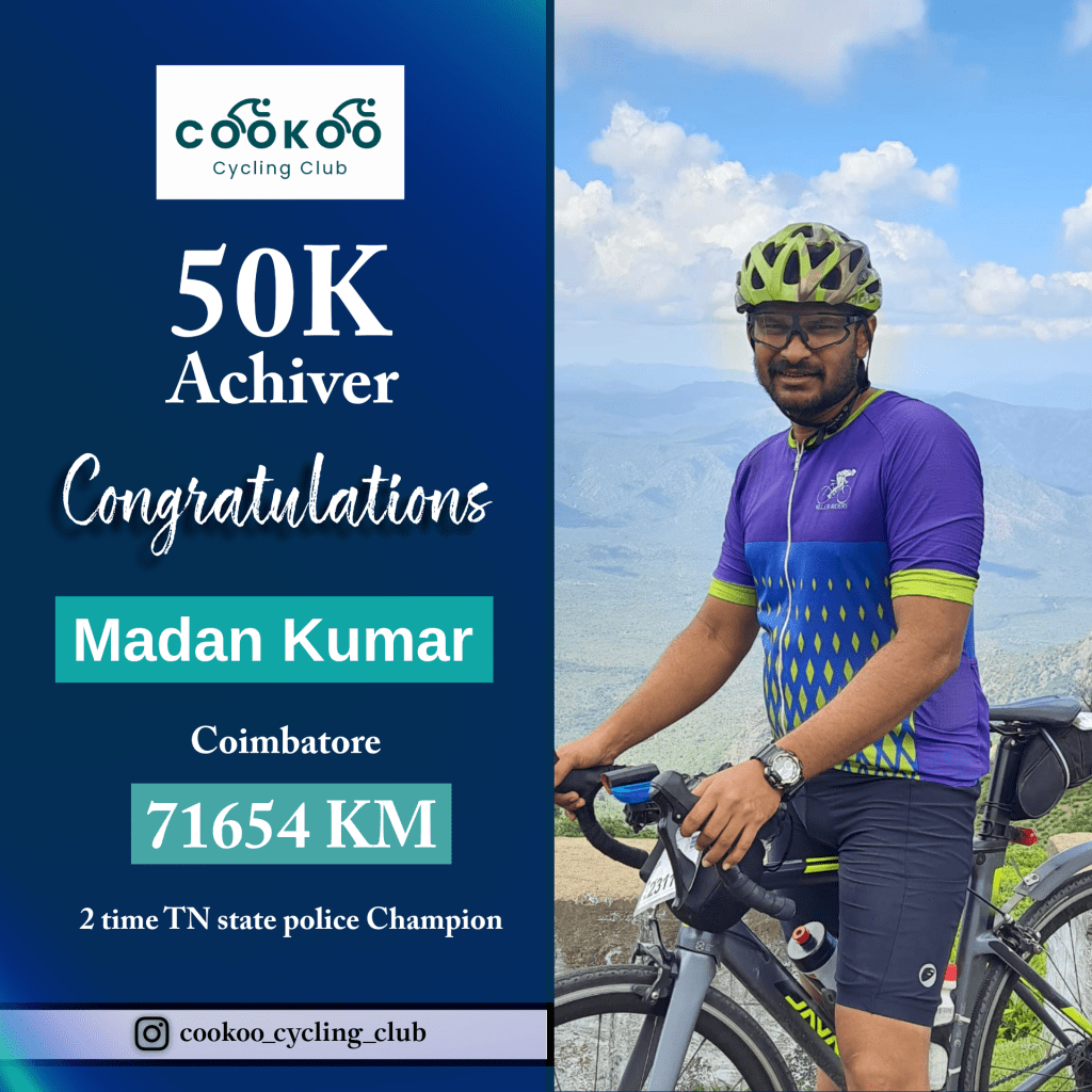 Cookoo is honored to recognize Kutti Muthu, Club lead of Madurai Randonneur and Founder of City Cycling Club , Madurai for conquering 75,000 KM and joining our 50K achiever list. πππΎπ΄πΎββοΈWith 45 BRM and SR, he has built a thriving cycling club in Madurai and mentored numerous cyclists. π π₯π