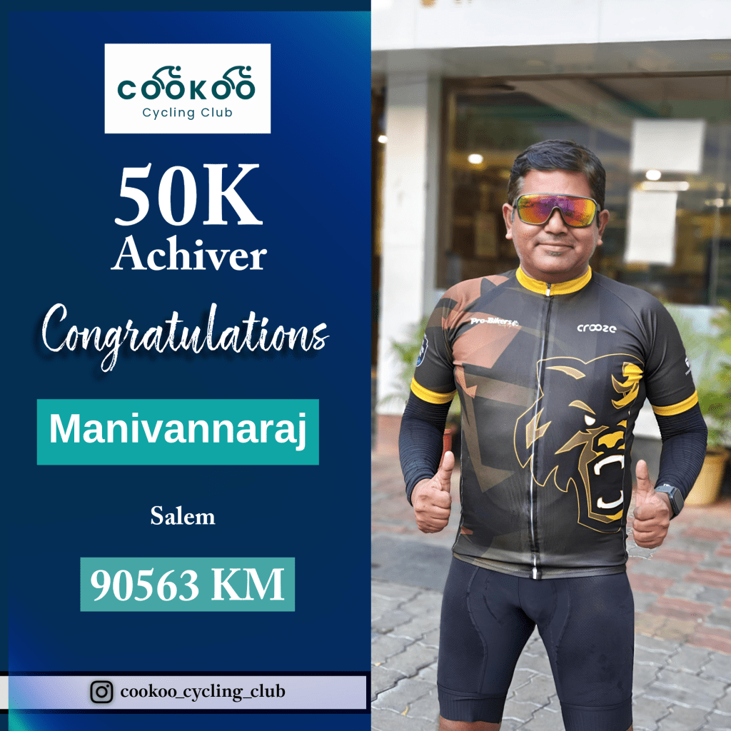 Manivannaraj is a distinguished cyclist from Salem, having hit 90563 KM and edging towards the impressive 1 lakh KM milestone! πππ΄
