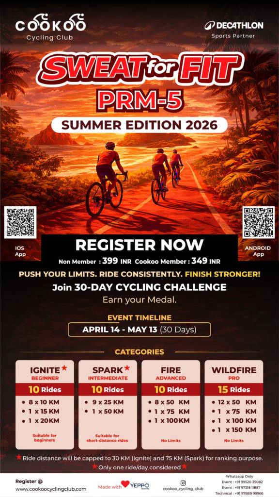 The Cookoo Cycling Club reminds riders that the early bird registration fee of ₹349 for their event expires on October 17, 2025. After this date, the fee will increase to ₹449. Participants are encouraged to register promptly at the discounted rate, inviting friends to join as well.